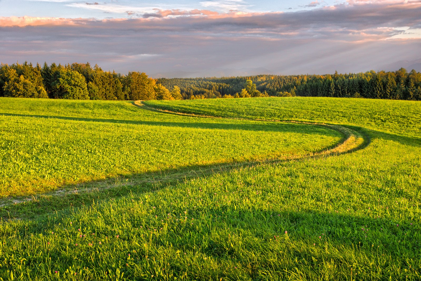 Previous Image Next Image Winding Dirt Road in Meadows Winding Dirt Road in Meadows, green Hills with Forest in Background